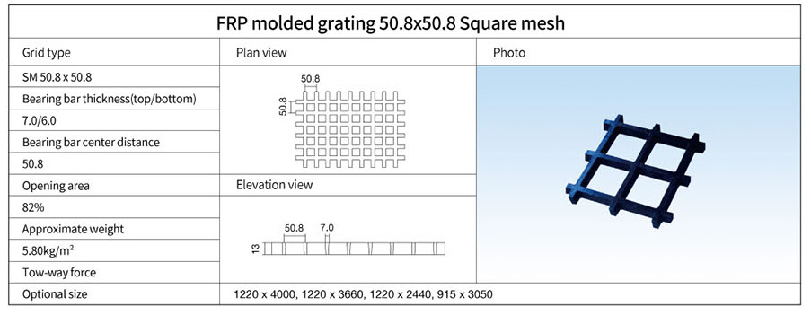 FRP Rejilla Moldeada 50.8x50.8 Malla Cuadrada