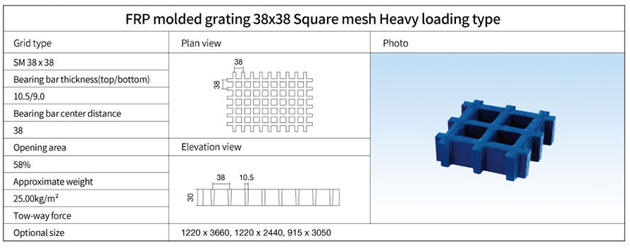 FRP Rejilla Moldeada 38x38 Malla Cuadrada Tipo de carga pesada