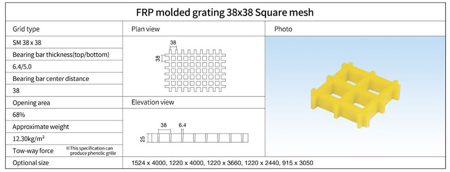 FRP Rejilla Moldeada 38x38 Malla Cuadrada